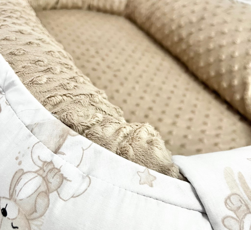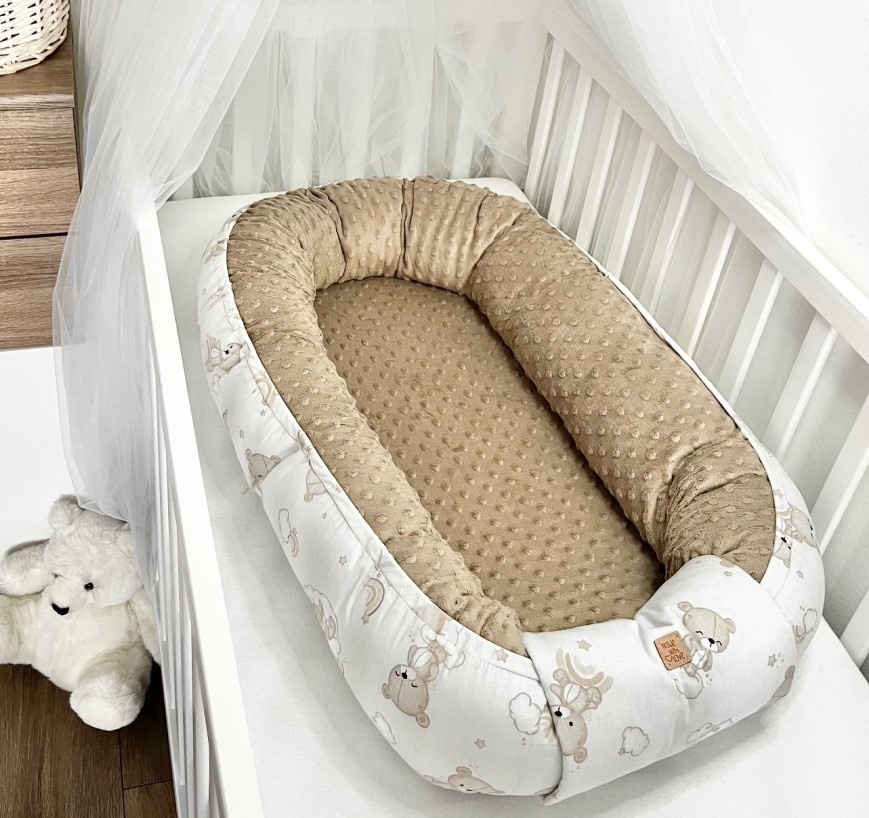 A babafészek egy szerethető, játékos világot teremt a kisbabád számára – repülős mackóival és mogyoróhéj színű, buborékos minky belső borításával azonnal elröpíti őt a megnyugvás puha felhőire. Letisztult, mégis bájos megjelenésének köszönhetően kisfiúk és kislányok számára is tökéletes választás már újszülött kortól.