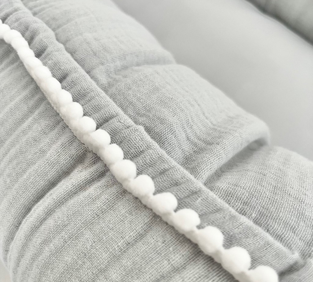 A muszlin babafészek tökéletes választás, ha természetes, puha és biztonságos környezetet szeretnél biztosítani újszülötted számára. A 100% pamut duplagéz anyag rendkívül légies és finom tapintású – ideális az érzékeny bababőr számára, hiszen légáteresztő, nedvszívó és hipoallergén. A duplagéz, más néven muszlin, két rétegben szőtt pamutszövet, amely könnyű, mégis meglepően tartós – kifejezetten ajánlott újszülöttekhez és kisbabákhoz.