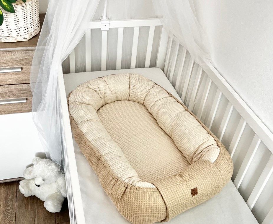 A waffle babafészek a letisztult elegancia és a bababiztos kényelem tökéletes kombinációja. Külső része strapabíró, mégis puha waffle pamutból készült, amely kiváló légáteresztő képességgel rendelkezik amely finom, meleg és megnyugtató érzetet nyújt a babának.
