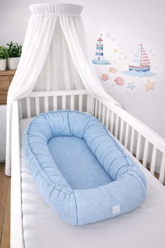 A szürke színvilág időtálló, uniszex és bármely babaszobába harmonikusan illeszkedik – legyen szó modern, skandináv vagy épp klasszikus hangulatról. A fészek körkörös pereme védelmet nyújt az akaratlan mozdulatok ellen, így segíti a baba nyugodt alvását.