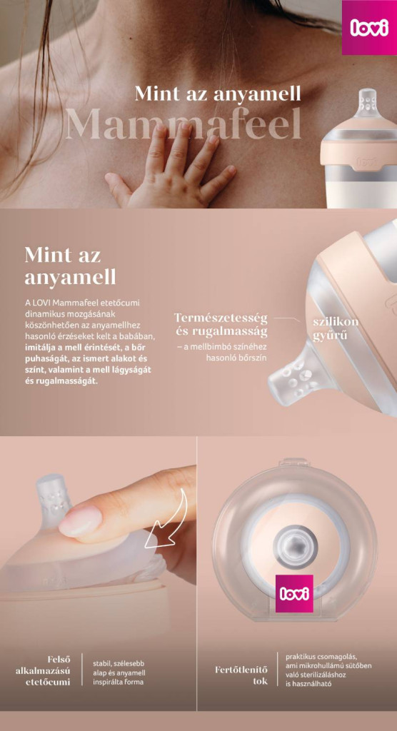 Az innovatív Mammafeel cumisüveg az anyai mellet mintázza - forma, tapintás és a mozgás tekintetében. A cumisüveg kialakításának köszönhetően a cumisüveges táplálás kombinálható a szoptatással.