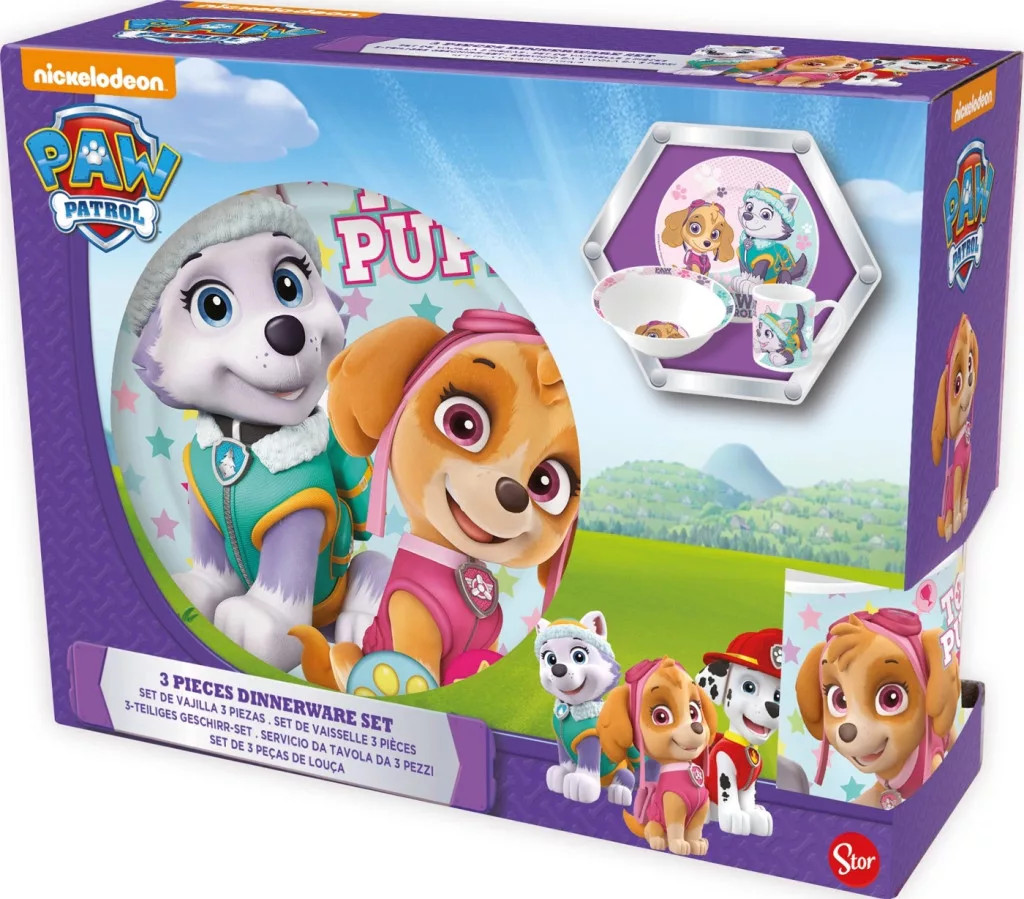 Mancs Őrjárat Girl Stars porcelán étkészlet Díszdobozban
