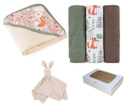 PETITE&MARS Bambusz törölköző kapucnival, 3db-os pelenka és szundikendő! Rosy Wilderness